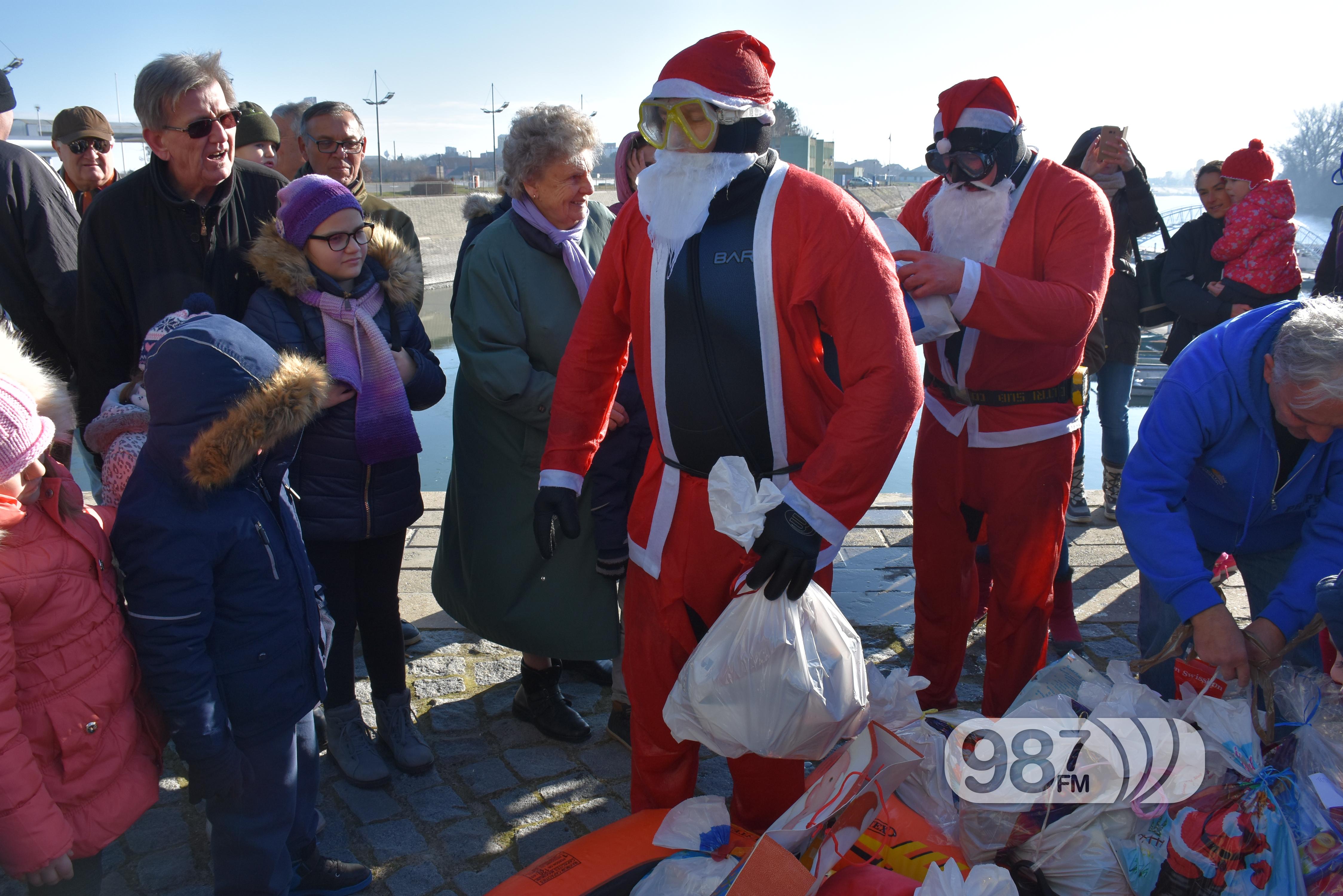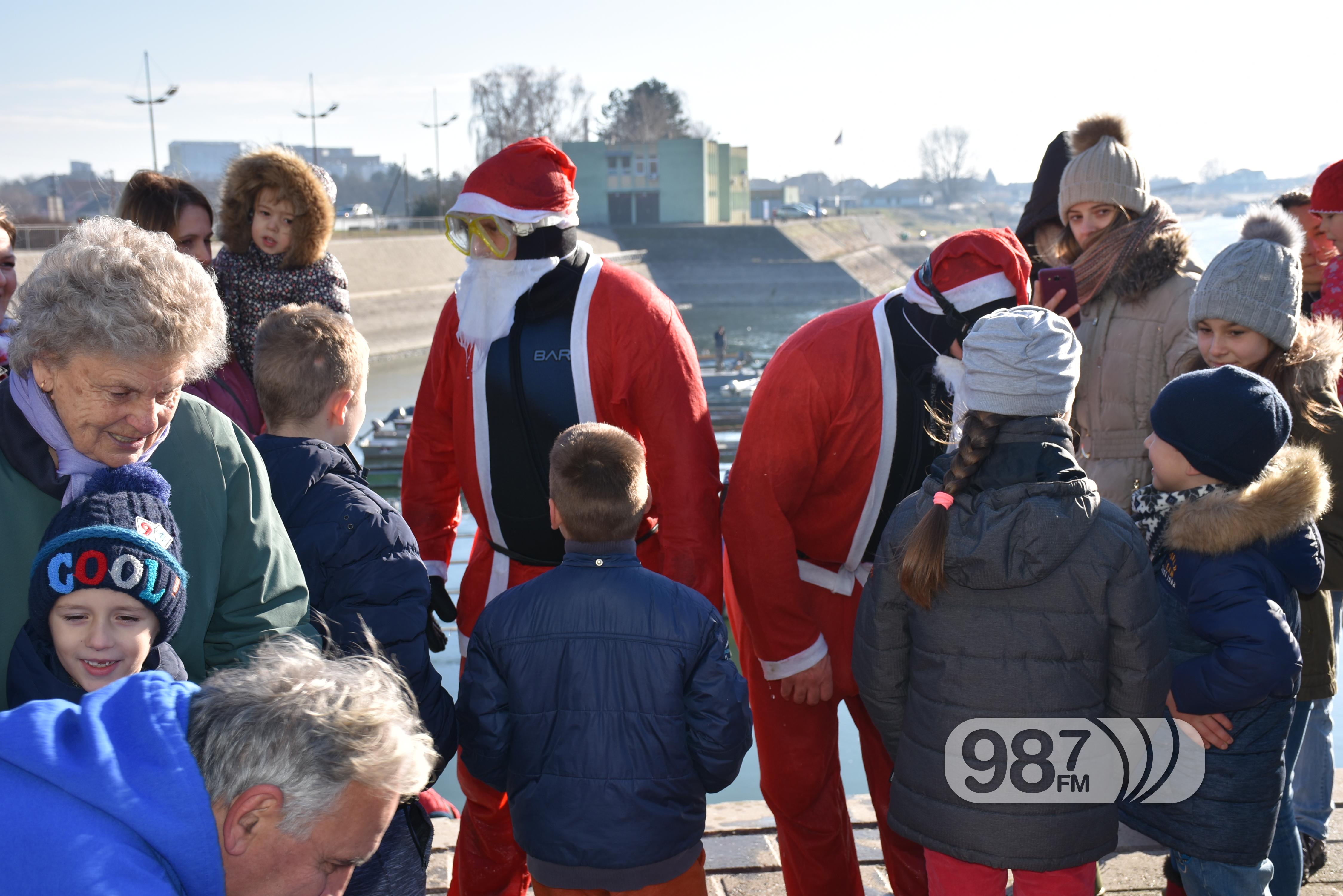 -Da čujem ko je ove godine bio dobar? povikao je Deda Mraz kad je izronio iz Dunava. Okupljeni mališani u apatinskoj Marini su ga pozdravili aplauzom, a nakon nekoliko pesmica dobrodošlice krenula je podela poklona.