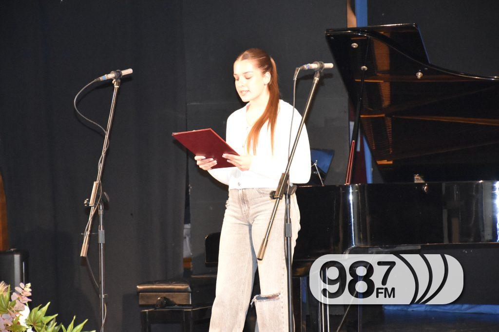 У културно-уметничком програму учествовали су ученици гимназије и стручне школе „Никола Тесла“ из Апатина, као и ученици и наставници Основне музичке школе „Стеван Христић“. Рецитована је песма Бранка Ћопића „На Петровачкој цести“ у извођењу Јасне Перенчевић и Маше Рајић, као и композиција „Тема и варијације на тему Карневал из Венеције“ коју је извела наставница Илона Јановић на кларинету уз клавирску пратњу Стефана Ракића. Невена Стојановић је говорила поему Доке Стојићића „Писмо госпођи Хелги“, а клавирски дуо, ученице ОМШ „Стеван Христић“, Анђелија Радишић и Јована Куриџа, извеле су композицију „Orange boogie“ од Манфреда Шмица. На самом крају културно-уметничког дела програма, ученица Софија Пашкаш говорила је песму Десанке Максимовић „О пореклу“.