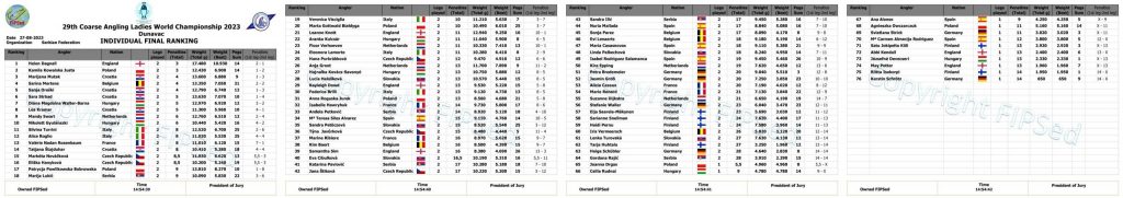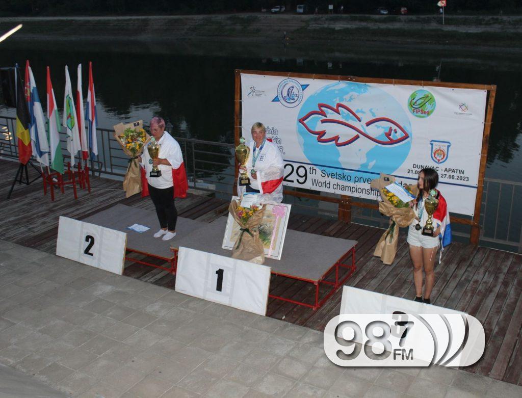 Свечаном церемонијом и доделом пехара, на тераси ресторана “Плава ружа”, јуче је у Апатину завршено 29. Светско првенство у риболову на пловак за даме. У заливу Дунава код Апатина надметало се четрнаест репрезентација, а свака од њих је имала по пет такмичарки. Након дводневног такмичења прво место у екипној конкуренцији освојила је репрезентација Хрватске, друга је Италија, а трећа репрезентација Пољске.