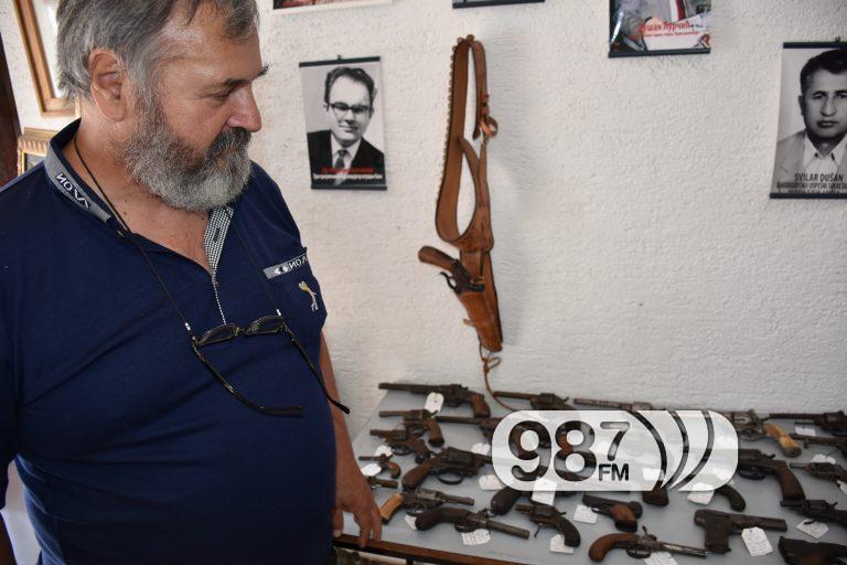 – Ovde imam oko 50 komada različitog naoružanja, dok kod kuće imam još toliku količinu. Ovo koje je izloženo danas spada u C kategoriju, odnosno, staro oružje. Ipak, i takvo se mora u SUP-u registrovati i ne sme se uz njega držati ni koristiti municija. Među primercima imam i revolver vojvode Ostojića, 12 mm kalibar. Ostojiću ga je poklonio Milan Paroški, a kako je za njega korišćena neadekvatna municija, eksplodirao je. Dobio sam ga, posle smrti Ostojića, od njegove supruge, kaže za Radio Dunav Nedeljko Ćupović.
