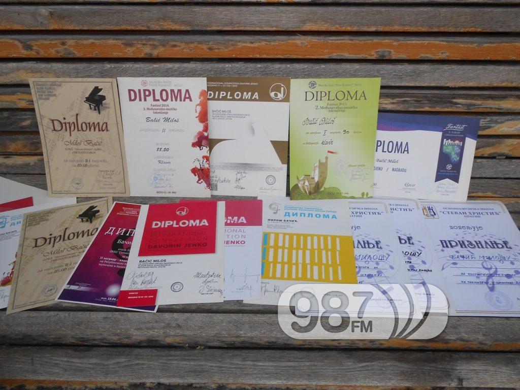 Njegova „kolekcija“ diploma je velika. Sa svakog takmičenja je doneo priznanje. Ne svira za nagrade, ali bez tih diploma bilo bi mnogo teže planirati budućnost. A, Miloš već zna šta želi da bude u životu.