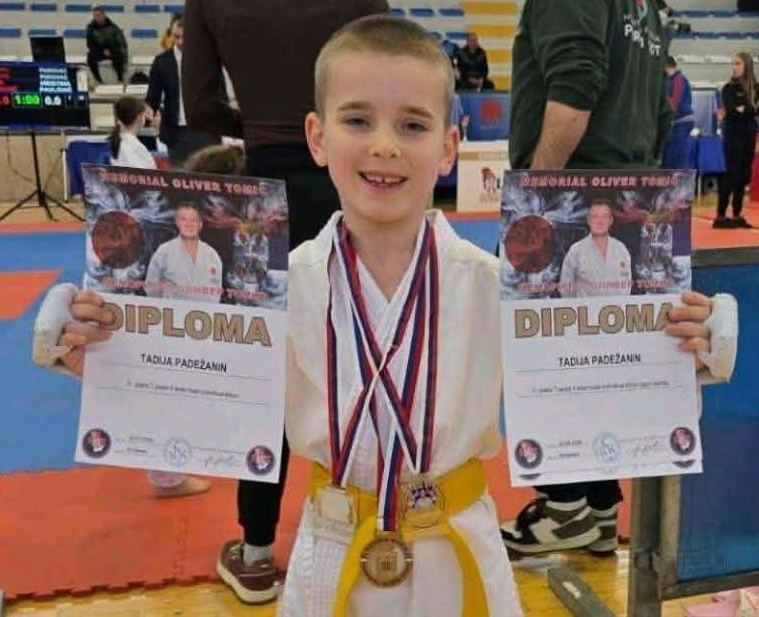 Тадија Падежанин се такмичио и у својој и у групи старијих, 7 и 8 година и освојио 2 злата, 1 сребро и 2 бронзе (спаринг, кате и кихон)