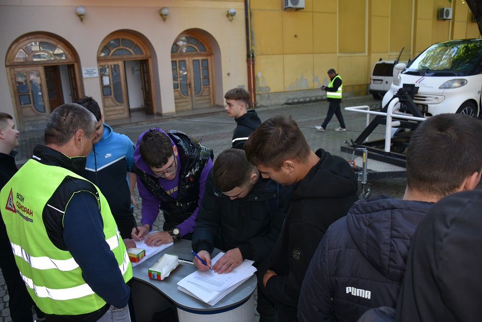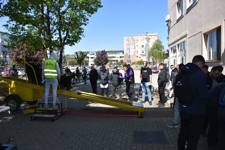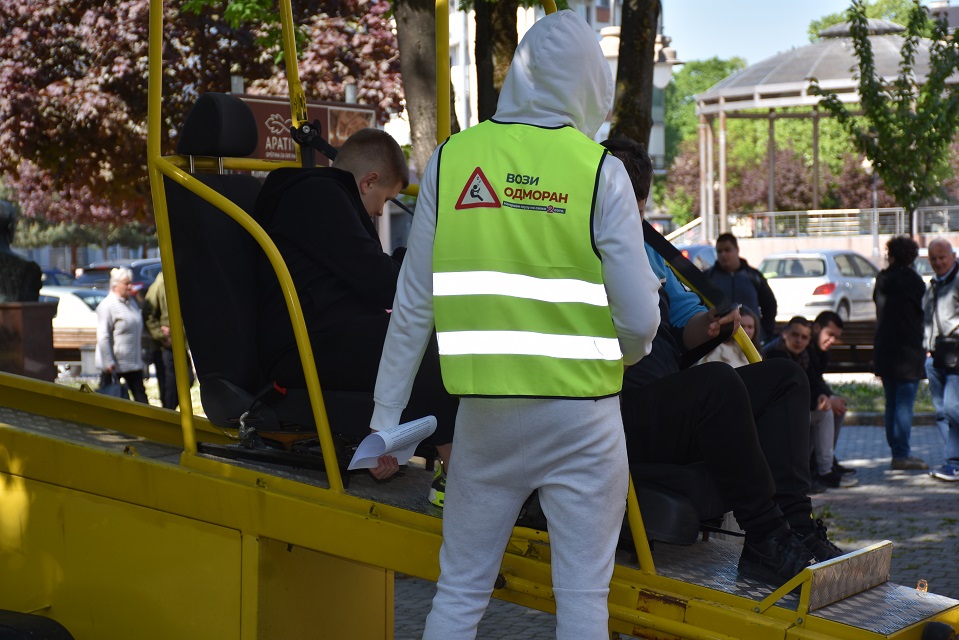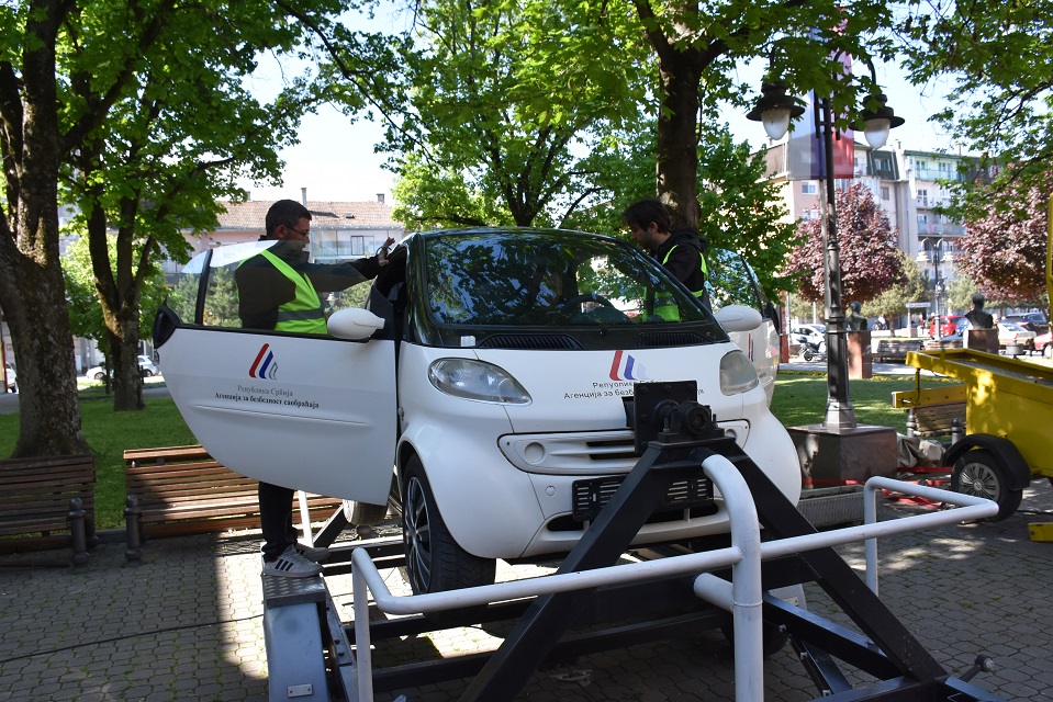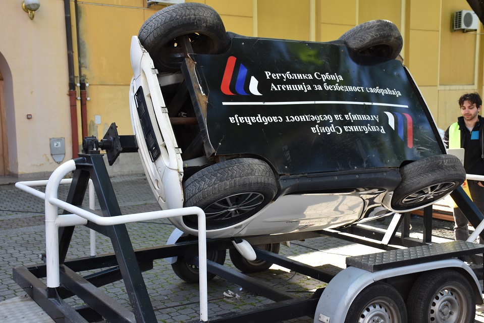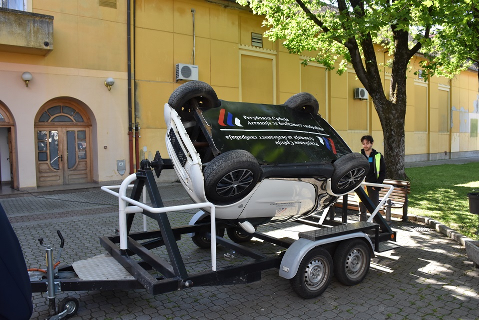 У оквиру практичног дела, ученици су имали прилику да на полигону искусе симулацију превртања возила, као и ефекте директног судара при малим брзинама, што је додатно појачало утисак о значају безбедне вожње.
