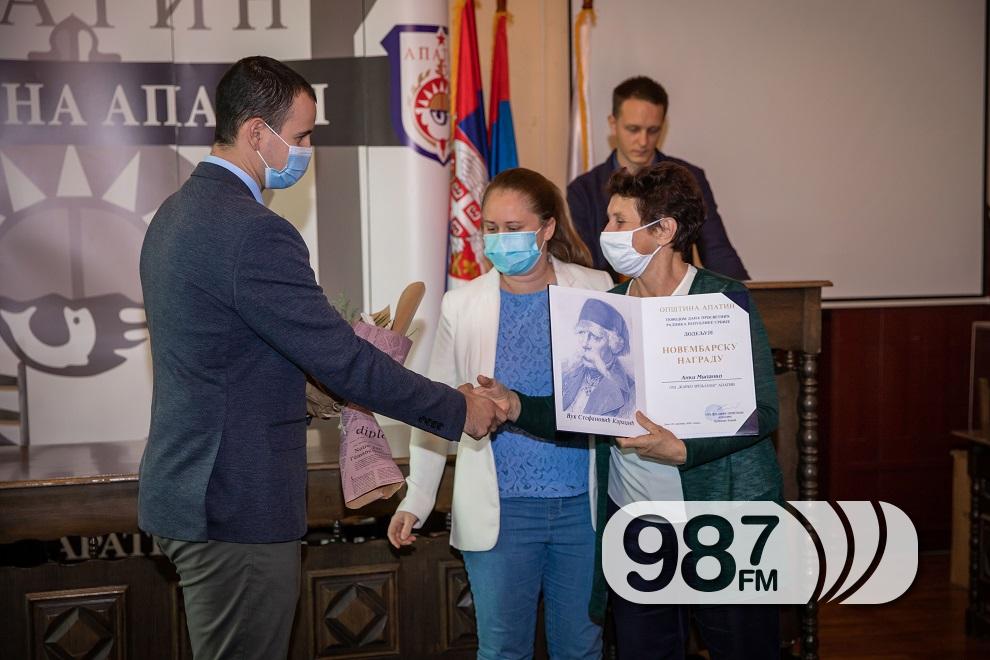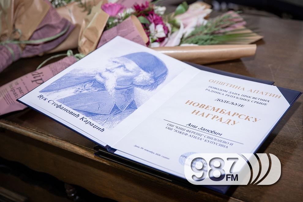 Овогодишњи добитници “Новембарске награде” су Ана Јанович професор историје у ОШ „Kиш Ференц“ у Свилојеву, Милена Пањевић професорка разредне наставе у ОШ „Младост“ у Пригревици, Тина Тркуља професорка ликовне културе у Гимназији и стручној школи “Никола Тесла”, Ружица Шауер медицинска сестра-васпитач у Предшколској установи „Пчелица“ у Апатину и Анка Миланко учитељица разредне наставе у ОШ „Жарко Зрењанин“. Признања је добитницима уручила председница општине Апатин, Дубравка Kораћ.