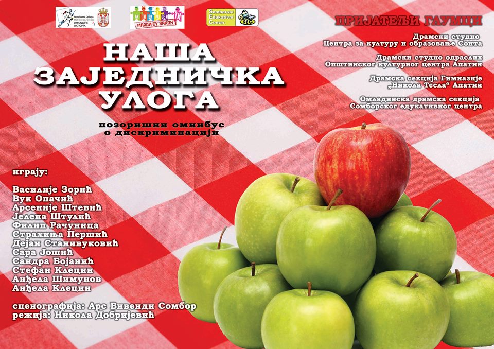 Omladinski projekat ,,Naša zajednička uloga” sprovodi neformalna grupa ,,Prijatelji glumci” uz podršku Resurs centra ,,Somborskog edukativnog centra”, u okviru programa ,,MLADI SU ZAKON”, a finansira Ministarstvo omladine i sporta Republike Srbije.