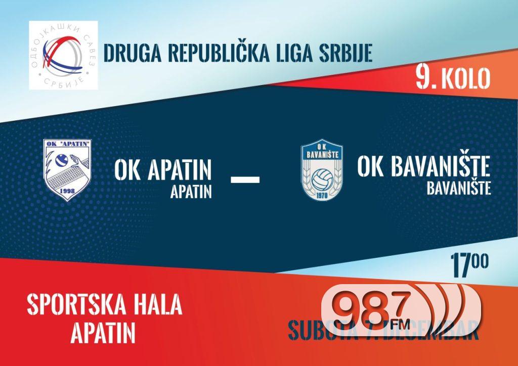 У оквиру деветог кола Друге републичке лиге Србије, одбојкашице Апатина ће у суботу играти против Баваништа . Утакмица ће се одиграти у спортској хали у Апатину са почетком у 17,00 сати.