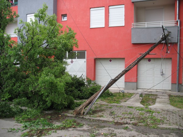 Olujni vetar sa kišom, a na pojedinim mestima sa gradom veličine lešnika, za pola sata juče(četvrtak) iza ponoći naneo velike štete u Somboru. Metereološka stanica u Somboru je zabeležila da je palo četiri litra kiše po kvadratnom metru a severozapdni olujni vetar duvao brzinom od 19 metara u sekundi. Zbog srušenih stabala, najviše čuvenih somborskih starih bođoša, saobraćaj je bio zatvoren u nekoliko gradskih ulica. Na Gakovačkom putu, lakše telesne povrede dobilo je jedno lice na čija kola je palo stablo, saopštila je policija. Vatrgasne ekipe intervenisale na nekoliko lokacija zbog oštećenja dalekovoda I nestanka struje u pojedinim delovima grada. Štete su nanete i poljoprivrednim usevima, najviše u Aleksi Šantiću. U Svetozaru Miletiću drveće je bukvalno padalo na krovove kuća.