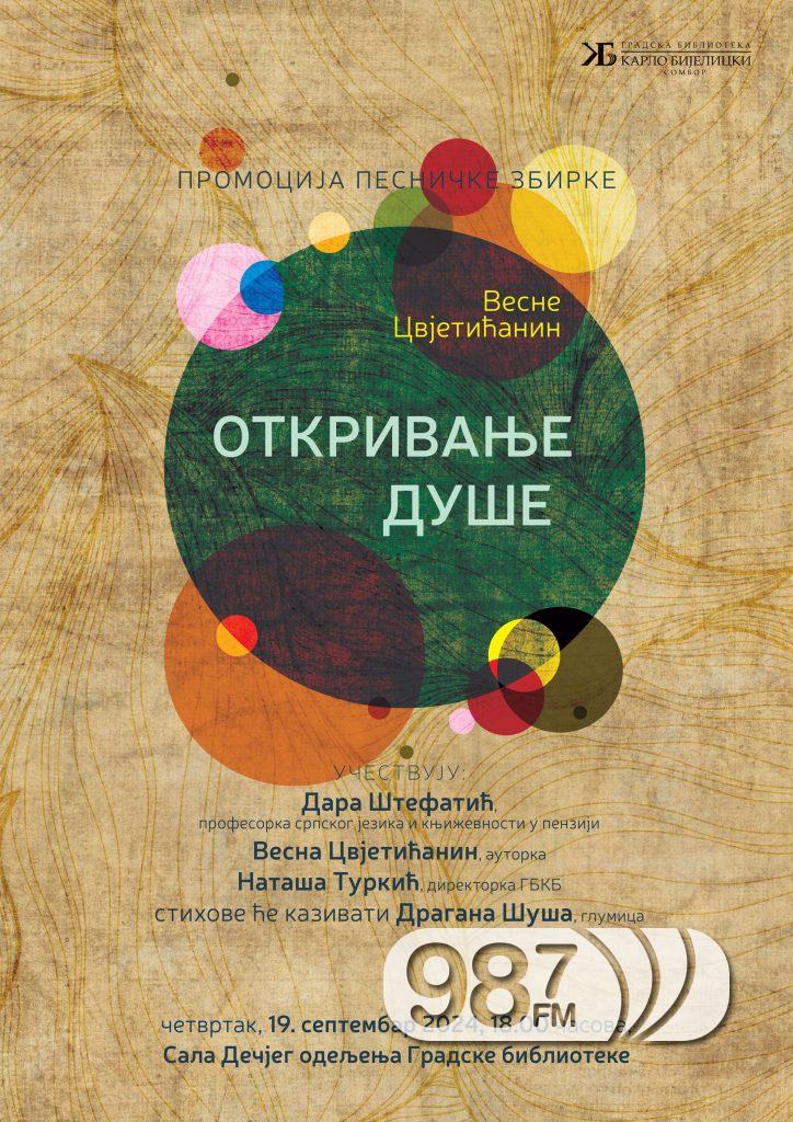 Представљање најновије песничке збирке из издавачке продукције Градске библиотеке „Карло Бијелицки“ Сомбор Откривање душе Весне Цвјетићанин биће уприличено у четвртак 19 септембра са почетком у 18 сати у сали Дечијег одељења ове сомборске библиотеке .