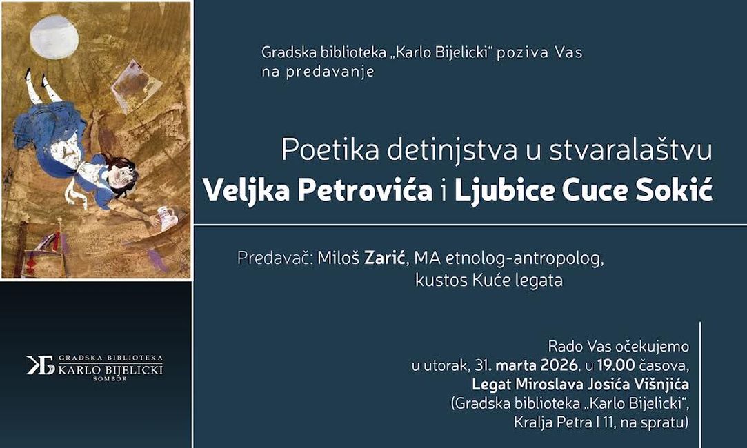 У уторак, 31. марта, са почетком у 19.00 часова, у Легату Мирослава Јосића Вишњића биће одржано предавање које осветљава тему детињства у делима двоје значајних уметника – Вељка Петровића (1884–1967) и Љубице Цуце Сокић (1914–2009).
