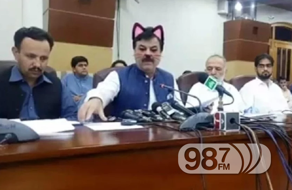 Покрајинска влада пакистанског “Khyber Pakhtunkhwa” уживо је емитовала конференцију за медије на Facebooku, али је заборавила искључити филтер “cat”. Kао резултат тога публика је гледала своје политичке вође украшене шиљатим ушима и брковима, пише РТ.