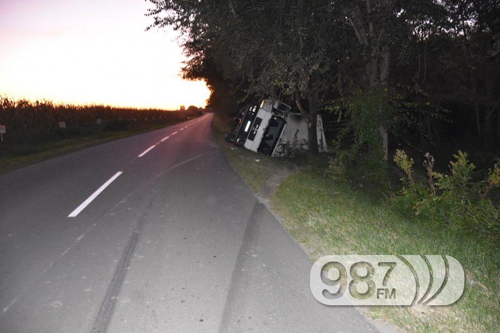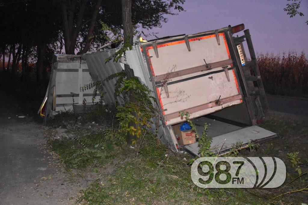У саобраћајној несрећи која се у послеподневним сатима догодила на путу Апатин-Пригревица, возач хладњаче сремскомитровачких таблица излетео је са коловоза и преврнуо se у канал.