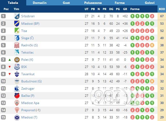 Forma Apatinaca je u usponu, u poslednjih pet mečeva, ostvarene su četiri pobede, sve četiri bez primljenog gola, a potvrda uspešnog proleća trebalo bi da stigne u nedelju. Podsećamo da je Mladost na polusezoni bila poslednja na tabeli sa samo 9 osvojenih bodova, dok bi prolećni saldo eventualnim trijumfom u poslednjem kolu iznosio, tj. došao do cifre od 24 osvojena boda (ukupno 33).