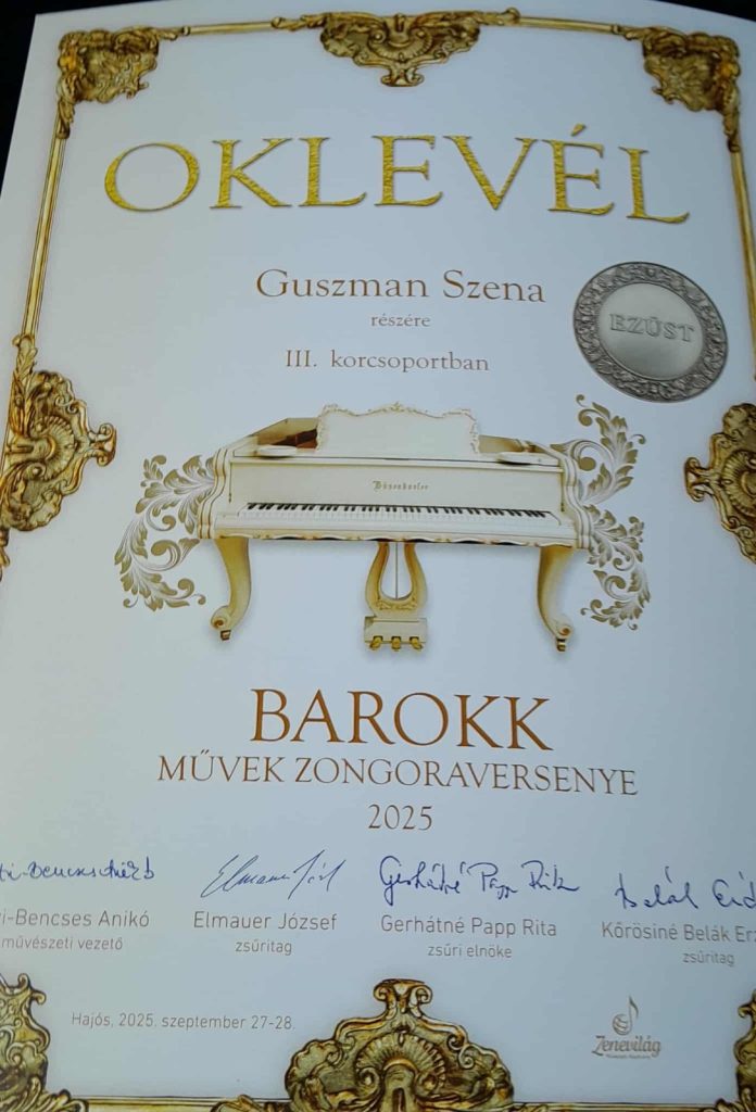 На Међународном клавирском БАРОК такмичењу које је одржано у свечаној атмосфери у Хајошу ( Мађарска), талентована ученица ове основне музичке школе из нашег града, Сена Гусман у класи наставнице Еве Анталович, освојила је сребрну плакету, односно другу награду на овом великом такмичењу.