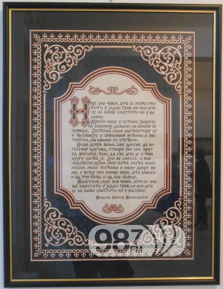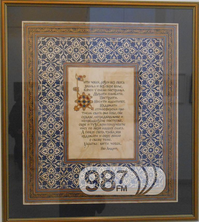 – Kaligrafija kao umetnost lepog pisanja nema puno veze sa našim svakodnevnim rukopisom. Ova pisma se ispisuju pažljivo, iscrtavaju se slova, perom koje se umače u tuš i ukrasi koji idu uz tekst su iz oblasti slikarstva, dodala je umetnica.