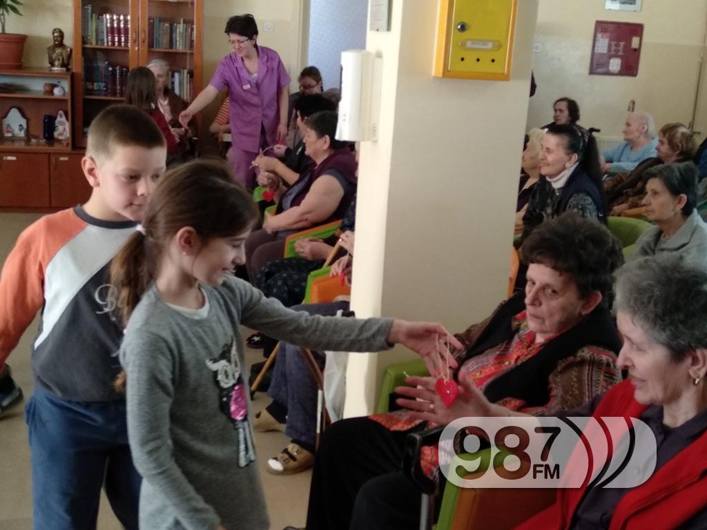 Ученици су корисницима поделили срца која су сама израдили у школи, као знак љубави, поштовања и пријатељства међу генерацијама.