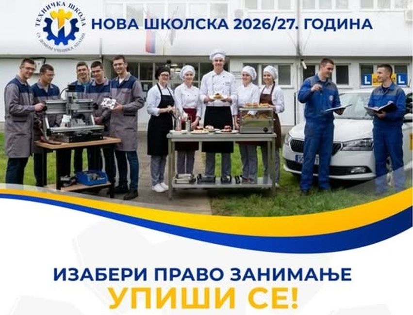 У Техничкој школи са домом ученика у Апатину у току је упис ученика за школску 2026/2027. годину, а будућим средњошколцима нуди се образовање које, поред теорије, ставља акценат на практичан рад и стицање конкретних вештина.